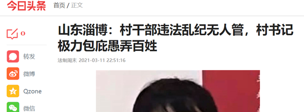本站讯 2020年12月中旬,本站和腾讯、今日头条、网易等网络媒体报道了山东省淄博市周村区北郊镇西坞村22位村民的实名举报,反映村书记见法贞,作为一名党的基层领导干部,在2017年醉酒驾车撞死人后不仅未被判刑,在党内也未受到任何处理,而且至今依然是区人大代表,仍然控制着西坞村两委班子,继续称霸一方;村副书记王淑勇的父亲王振宽,在某教盛行时是一名组织者,通过关系却顺利的通过了入党政审,而且还当上了村副书记。就是这样的两位村干部,他们利用手中权力贪污腐败、毁坏良田、横行乡里,私改承包合同谋取私利,村里账目长期不公开等问题。目前为止,村民们却始终没有得到镇、区相关部门与村委会的合理答复。
