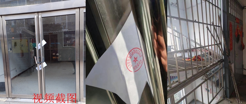2月17日上午9点,朱琦和肖卫国再次来到公司,见状一楼大门扔被贴有封条,大门被U型锁锁住。在三捷公司明确说明办事处社区不是执法单位其查封是典型违法行为后,直至中午3点才解除了封条,打开了大门。