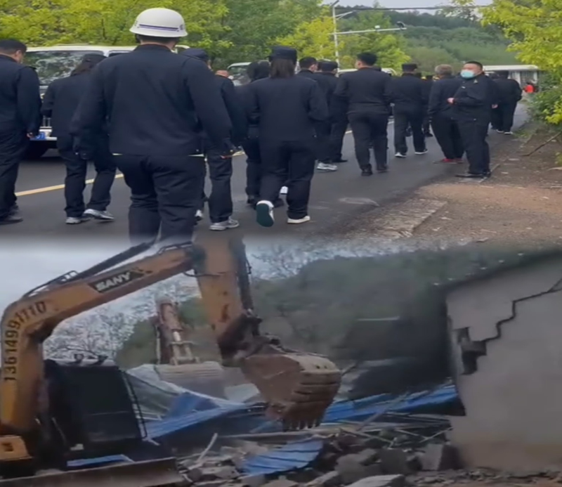 5月11日这天,强迁开始了,弓长岭区政府副区长马国庆、乡书记赵洪凯、乡长刘树根带队,安平乡政府、弓长岭区公安局、派出所、城管、动迁办、特警、村委会、民兵,对人参谷进行了封谷,现场来了400多人,他们不许进不许出,并且剪断电线、网线,剪断公安系统监控摄像头,砸毁居民监控,开始对赵德仁家和邻居白伟家进行强拆。