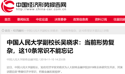 近日,中国人民大学副校长、知名经济学家吴晓求为人大财政金融学院2019级全体研究生开讲,其演讲题目是“尊重经济学常识,把握金融发展规律”。吴晓求认为,当下形势错综复杂,须遵守10大常识,才能不犯大错。思想潮精编演讲,推荐阅读。