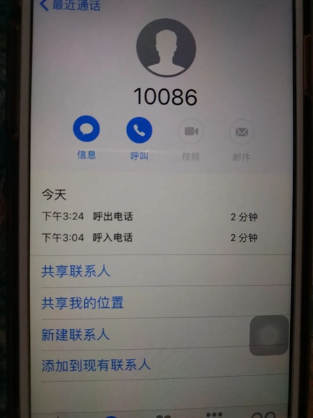 10086来电 客服查无此人