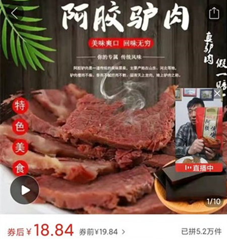 记者随即对网上各大网上商城进行搜索,发现这是一款名称为“阿胶驴肉”的产品,是由东阿县一家名为“山东驴贝贝食品有限公司”生产的。