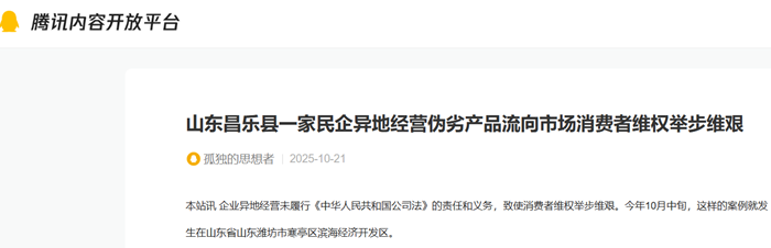 本站讯 企业异地经营未履行《中华人民共和国公司法》的责任和义务,致使消费者维权举步维艰。今年10月中旬,这样的案例就发生在山东省山东潍坊市寒亭区滨海经济开发区。