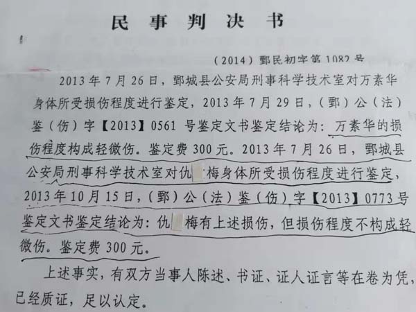 在提交给上级有关部门的一份书面反映材料中,万素华陈述了事情经过:我出生于1966年11月,汉族,初中文化,是山东省菏泽市鄄城县古泉社区大赵庄村的一位村民。我家所在的大赵庄村属于城中村,由于西邻居赵某生家想要走我二爷赵希生(系孤寡老人)正在居住的老宅基,我家没有给他,十几年来,赵某生一直对我家打骂不休。而我家这处宅基跟赵某生家没有任何关系,我们不是一个集体经济组织。