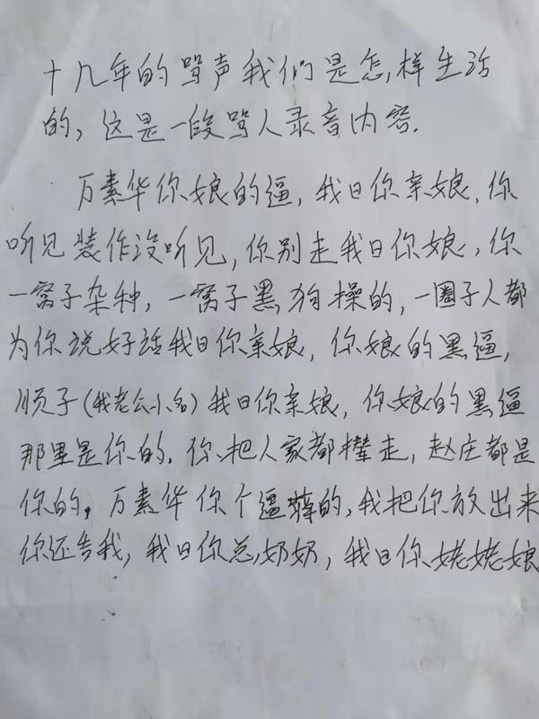 “自2003年赵某生一家住在我家西隔壁当邻居起,我们一家就不再安宁。2017年他们用胁迫和欺骗的手段和我家签订宅基地协议,把我家使用的老宅基划到他二哥赵某生名下。我们两家不是一个集体经济组织,我们家使用了百年的老宅基,怎么会有他家的地方?”近日,山东省菏泽市鄄城县古泉社区大赵庄村村民万素华女士致函有关部门反映说,多年来,她家邻居赵某生依仗他三弟的权势欺压百姓,不仅曾将她时年75岁的二爷打伤,还与他妻子等人屡次寻衅滋事对其进行辱骂和殴打。