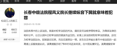 作为上级领导不制止这样的不作为、徇私枉法的行为就是犯罪,百姓的冤情上诉到这样的地方还有什么希望吗?反腐不要停留在口头上,更要避免灯下黑。对于主审法官宫平的错误与不作为,院领导明知却不及时制止就是在犯罪。陈明哲处长说程凤义院长知道此事并会关注,刚听起来让人开心,可将近一年了仍无进展及音讯,这不能不让人画个问号吧?长春中级法院前两任院长都因腐败而倒下,现任院长程凤义不应该也是那样吧?“不忘初心,牢记使命”要从一点一滴做起,法院无小事,每一个案件都牵扯到千家万户与社会安定,作为领导除本人身体力行、以身作则外,更应严格要求下属并及时纠正错误,才能使法院成为一个健康的整体为人民当好公仆。希望程凤义院长明查主审法官宫平在该离婚上诉案上的所作所为,纠正错误尽快开庭审理。对此,原告将拭目以待。