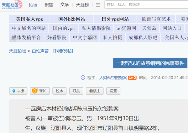 综上,一审判决在诉讼中受原告承诺,拘私枉法,收受贿赂,在认定事实上,以假乱真,以虚代实。而二审仍依葫芦画瓢。提审判决中,无视“省高院”决定提审的裁定,来个180度大转弯,丧失审判监督职能,所认定的事实完全照抄、照搬二审“17号终审判决”,采纳不实之词,对我陈忠玉提出的一系列证据不予采信,也不申明不予采信的理由。而对采信的证言又暗箱操作,没有质证,严重违反法定程序。特别指出的提审判决,在 2012年7月10日开庭审理,2013年12月29日方向我陈忠玉宣判,无故超审限一年余,严重违背我国《民事诉讼法》第176条、第207条之规定。更令我陈忠玉十九的申诉,最后得到“44号提审判决”,驳回我的诉求,合法权益仍在被非法侵害之中。我在无路可走,在绝望中恳请各位领导者予以关注,以期正本清源,昭雪我的冤案。容后多谢诸位!