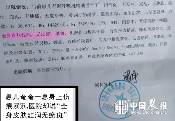 患儿出院时全身伤斑照片,有虐待患儿嫌疑,已经多次向贵阳市政府和相关部门反映,至今还没有给出结果