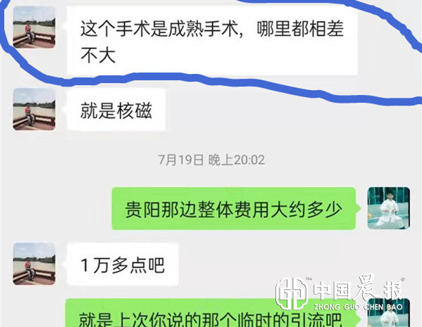 夸大宣传诱导、隐瞒医疗水平。之前我们是于7月18日去了重庆医科大学儿童医院,经核磁共振检查为“交通性”中—重度脑积水(附:重庆医科大学儿童医院《诊断证明》复印件)。我们把检查结果和“重庆专家警告的临时性颅外引流感染风险目前世界技术最高的美国都没有办法控制”发给了贵阳市妇幼保健院主治大夫卢煊,他在微信复中承诺他们的针对患儿症状“颅外引流手术和治疗很成熟”且“感染风险很小,总体能控制”(附:聊天记录截图)。
