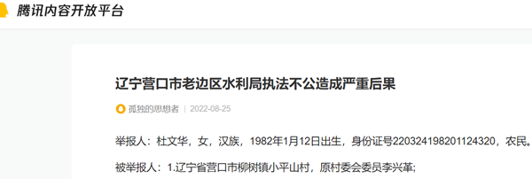 举报人:杜文华,女,汉族,1982年1月12日出生,身份证号220324198201124320,农民。