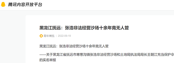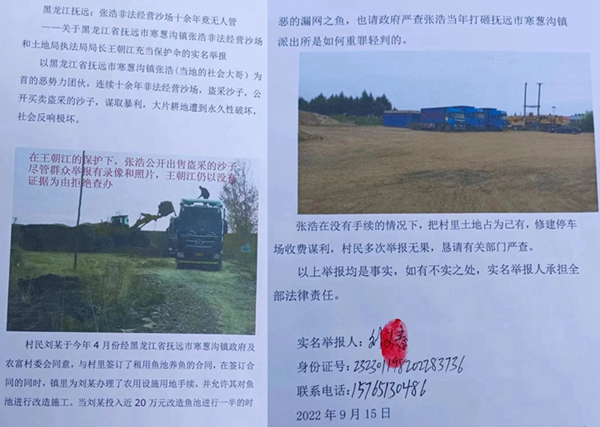 ——关于黑龙江省抚远市寒葱沟镇张浩非法经营沙场和土地局执法局局长王朝江充当保护伞的实名举报