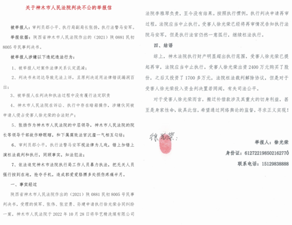 (原文标题:关于神木市人民法院判决不公的举报信)