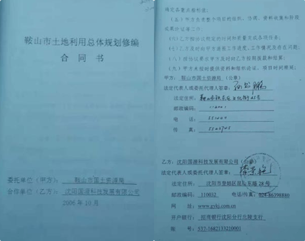期间的2007年,鞍山市政府面对项目用地与现行各级土地利用总体规划不协调紧张状况,决定报请对鞍山市千山区土地利用总体规划按法定程序进行调整,确定委托正在为鞍山服务的沈阳国源承担“局部调整千山区土地利用总体规划实施影响评价”工作,沈阳国源报价205.08万元,最后政府确定为94.56万元(沈阳国源方面认为我们审查过严格),这也使他们产生记恨。2008年,鞍山市政府决定依然由沈阳国源承担“鞍山西部地区土地利用总体规划局部调整”评价工作,但项目金额仅为30万元,沈阳国源不得不接此项目,最后李景艳找我委托鞍山本地人员作此项目的劳务方,由沈阳国源付给20万元的劳动报酬。我要求下岗的妻子会同鞍山相关人员利用业余时间,租借仪器设备历时近半年完成调查、评价报告等一系列工作,成果由沈阳国源上报,邀请专家评审(评审费由鞍山劳务费中支出),最后上报国家批准调整规划。同样2009年,鞍山市政府依然确定沈阳国源承担“鞍山市2009年一次性报国务院批准用地《鞍山市土地利用总体规划局部调整》”工作,项目金额88.5万元,李景艳也委托我们依然采用2008年的模式具体实施项目工作,劳务费给40万元,但此次历时近七个月。