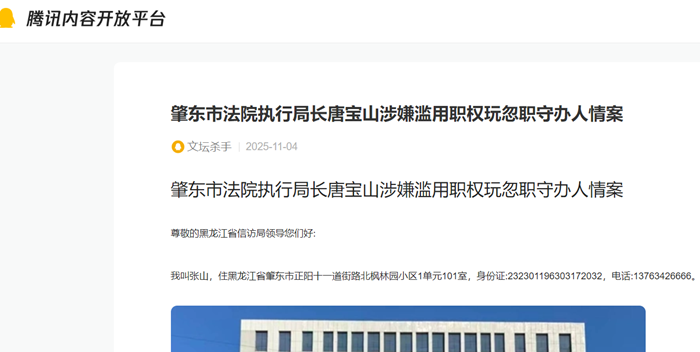 肇东市人民法院执行局长唐宝山(电话:19004605005),在执行亿科房地产开发公司与左连军高利贷一案中,本金加利息159万,有抵押物已查封,3套商服628.84 平方米,价值4617935元,查封2年不拍卖,给企业造成36万元利息,给企业造成损失。2025年3月4日在不查明财产的产权不清的情况下,其又查封了实际施工人的9套房产,共计930.24平方米,价值4436740元,是班组长、农民工的工资,上百人的血汗钱,半年多没变现,有上访的、告状的、要上吊的,错误查封导致上亿元项目滞销,损失及利息100多万元。