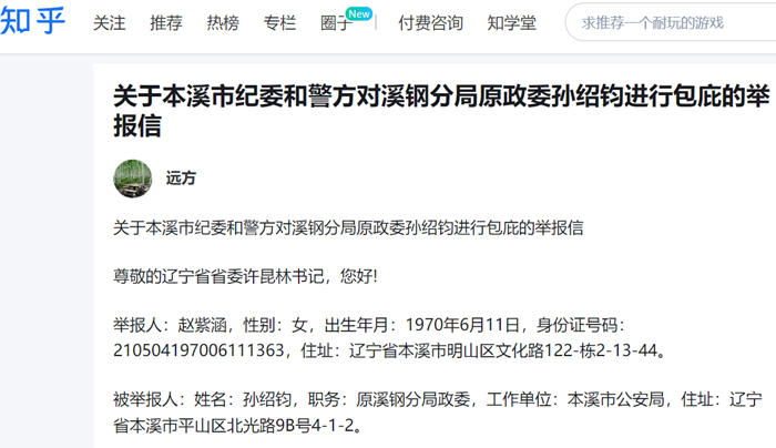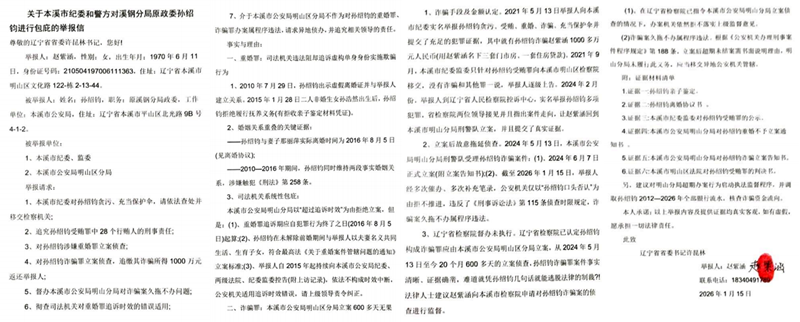 关于本溪市纪委和警方对溪钢分局原政委孙绍钧进行包庇的举报信