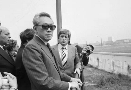 1979年6月13日,正在西德访问的李光耀站在柏林墙边眺望东德。