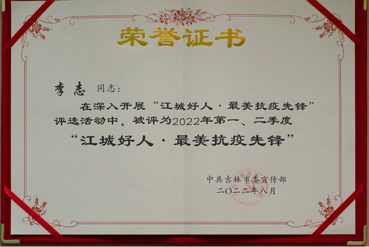 日前,资深新媒体人李志在1157名候选人当中获评吉林市委宣传部、市文明办组织评选的2022 年第一、二季度“江城好人· 最美抗疫先锋”称号。
