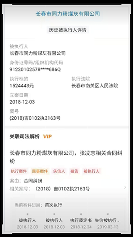 知情人称,2018年,同力公司因相关合同纠纷案被张某某诉至长春市南关区人民法院,被法院判令支付张某某人民币1542087元,因同力公司拒不执行南关区法院作出的(2018)吉0102民初1956号民事判决书确定的期限履行义务,被南关区法院裁定为失信被执行人。