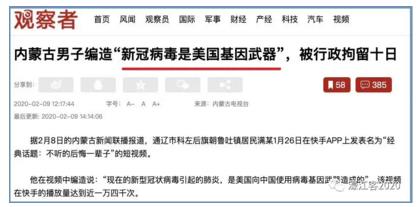 这样的言论,可能中国网友太熟悉了,因为相关的种种段子或社交媒体文章或许已经几万篇了。早前还有怀疑武汉病毒研究所的,但更多的是指向美国,努力将武汉疫情说成是美国的阴谋诡计、美国故意投毒,美国释放病毒武器,还有人说是去年武汉承办世界军人运动会时,美军运动员带进来的,并一直埋伏在武汉。