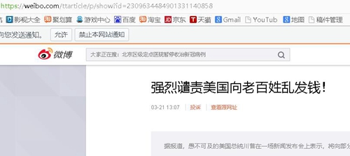 强烈谴责美国向老百姓乱发钱!