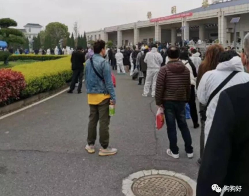 (今天早上,汉口殡仪馆领骨灰的长长队伍。)
