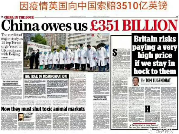 前不久,英国内阁办公室部长迈克尔·戈夫在接受英国BBC采访被问及英国在应对新guan病du yi情准备不充足问题时直言,去年12月中国就出现首个新guan病du病li,但来自中国的报告并没有清楚地说明yi情的规模、特质和传ran性,因此向中国索赔3510亿英镑。