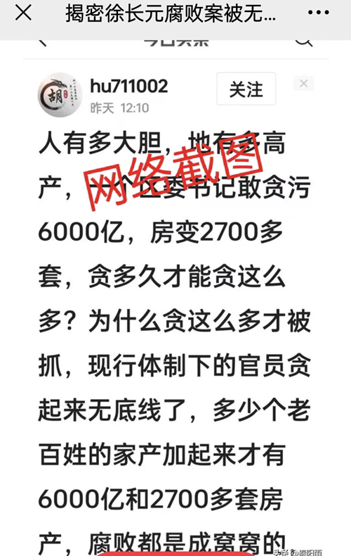 判决书上明确写着,徐长元这个家族“涉案金额达3.14亿”。这个3.14亿是怎么来的呢?调查中记者得知,这个数字几乎是囊括了徐家所有财产,包括尚未开发土地价格及徐家的债权。就在2020年9月徐家涉黑案下了判决之后,央视的法制栏目及几家官方媒体都是这样报道的。但是,最近一段时间以来,多家自媒体的报道先是说徐长元贪污了60个亿,后有人说是100个亿,接下来就有人说成6000多个亿和6500亿。对此,也有自媒体人站出来指责,他们查遍网上所有的报道,认为这些人是别有用心的,甚至是受什么人什么势力指使的。他们认为,中国一位区长,一个厅级干部,竟然贪污6000多个亿,这是什么性质?网络时代,国外人会怎么看怎么评价中国?更严重的是,有家自媒体竟然说徐长元贪污6000多亿判了12年,这个作者是个多么没长脑子的法盲啊?
