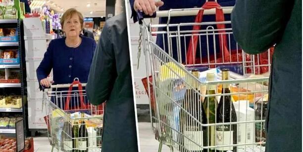 3月21日,媒体报道,德国总理默克尔近日光顾柏林一家超市,采购商品。拍摄者对媒体表示默克尔只买了一些橘子和柠檬。