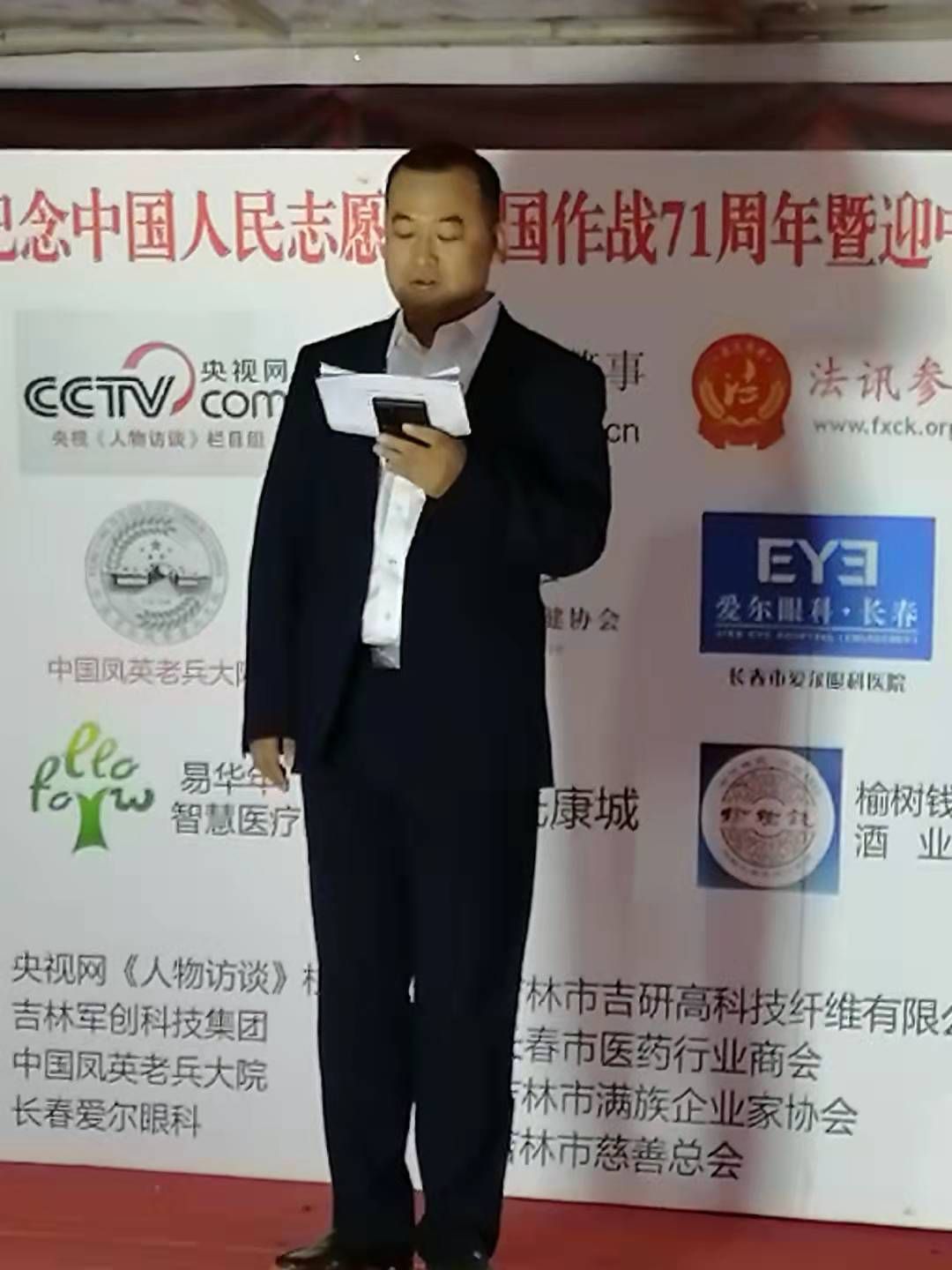 吉林市人大代表、吉林市慈善总会副会长、吉林市满族企业家协会会长、吉林市吉研高科技纤维有限公司董事长赵梓雄也是一名退役老兵,此行他现场向凤英老兵大院捐赠人民币15万元。赵梓雄表示:吉研高科是吉林省高新技术企业,以碳纤维产品的研发和生产为核心业务,拥有年产160吨聚丙烯腈基碳纤维生产线,技术水平和生产能力处于国内领先地位,为我国重要的新型纤维材料开发与生产基地之一。