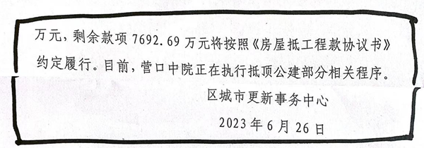 在大连市中院,针对同一事实能出现两种认定结果这样的事,早已不是什么怪事了。而紧随其后更加令人瞠目结舌的是,在今年6月26日各大媒体报道该事件后,城改办在向上级政府说明情况的报告中,又报告说那9000余平方米的公建又不是自己的了,已经作为工程款抵顶给海川集团了,营口中院正在执行抵顶公建程序。那么,面对城改办的这一做法,法院的法官们怎么想怎么看?也许一点也不会在意。