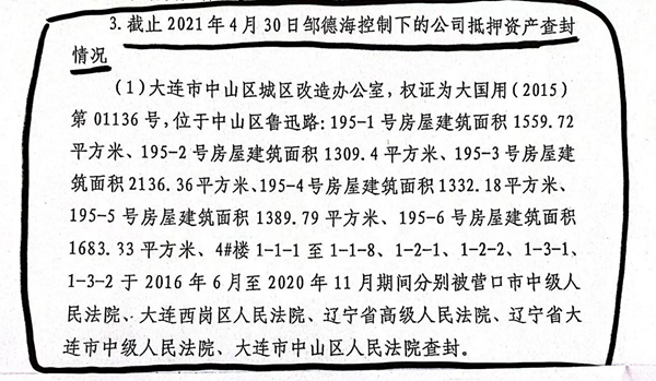 邹德海是大连海川建设集团的掌门人,多年来积攒了一些家底,但手头还是没有钱。一切噩梦都是从十几年前的2011年开始的。这年三月,他费了很大的周折,也使用了不小的手段,才从大连中山区城改办手中拿下一个造价约3.35亿的老城区改造工程,可是当他与中山区城改办签订协议时,邹德海有点犯难了,原因是这么大的工程,政府不拿一分钱,一切得全由他们公司来垫付。还有,这个工程从土地使用证、规划到开工许可等手续,什么也没有,但他还是与城改办签订了合同。合同中约定,工程中公建部分也就是一到三层的商铺中,拿出 9000余平方米,抵给海川集团做工程款。工程开始了,他一切盼望着这身为甲方的城改办能早些办下土地使用证,然后再办下其它手续,好使他的9000余平方米尽快变现。可是,手里的钱很快就花完了,怎么办?去银行贷款又无抵押物,于是,只好去民间借贷,凭着他多年的信誉,很快,他从民间融来了上亿的资金。