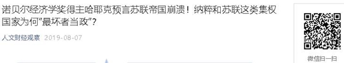 诺贝尔经济学奖得主哈耶克预言苏联帝国崩溃!纳粹和苏联这类集权国家为何”最坏者当政”?
