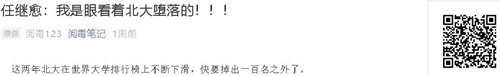 这两年北大在世界大学排行榜上不断下滑,快要掉出一百名之外了。