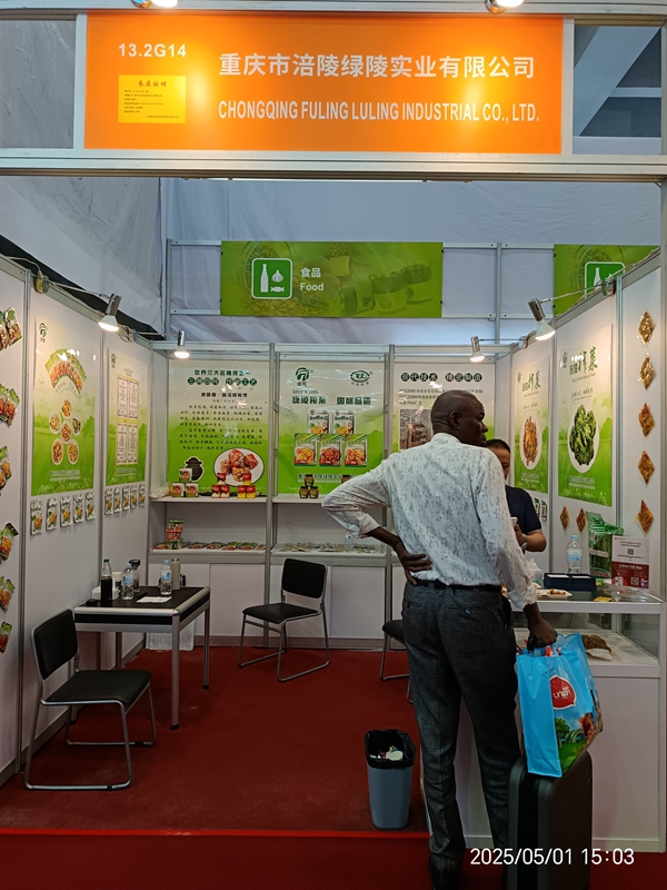 本届广交会三期正在广州举行,涪陵区两家榨菜企业参展。在重庆市涪陵绿陵实业有限公司的展区背景墙上,《沁园春·咏涪陵榨菜》以凝练优美的文字,展现出独特的地域文化魅力,吸引众多客商驻足品读。